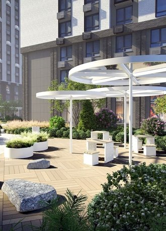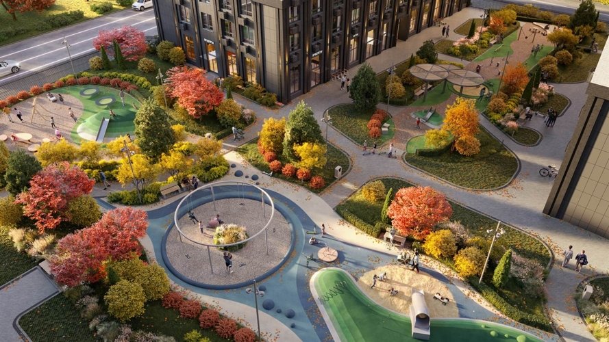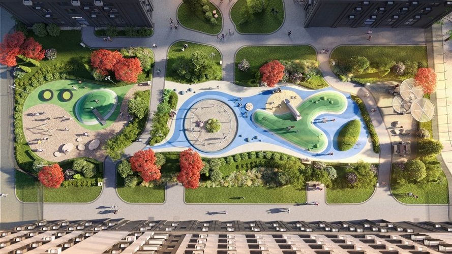 На закрытой территории размещены спортивные площадки, детские игровые комплексы, места для отдыха взрослых, предусмотрена комфортная зона для ведения вашего бизнеса с ноутбука на свежем воздухе.