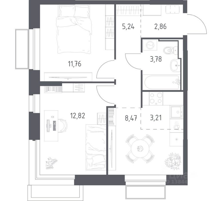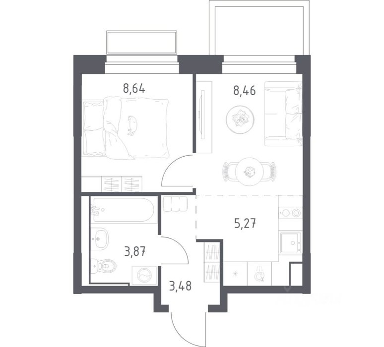 Площадь от 33.2 м2
