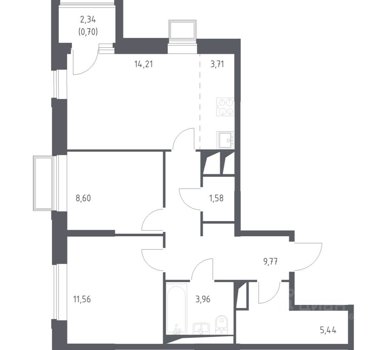 Площадь от 68.6 м2