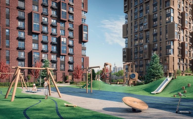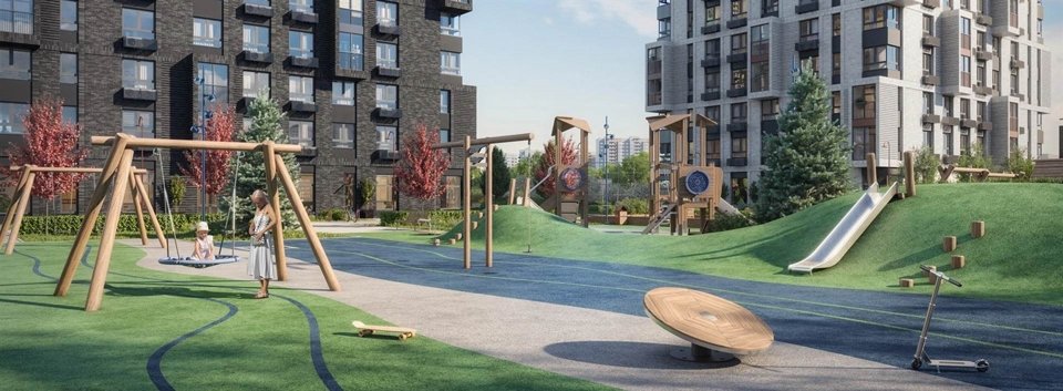 Детские площадки, зона work out с тренажёрами и теннисные столы в окружении плодовых деревьев, удобных лавочек, красивых дорожек и цветочных клумб, чтобы вы наслаждались жизнью как внутри, так и снаружи комплекса.