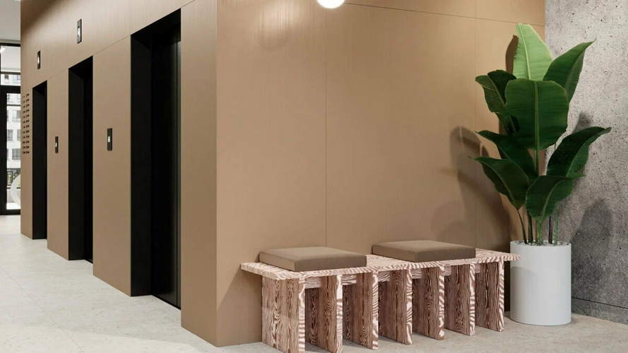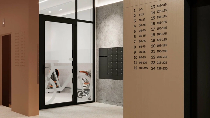 Панорамные двери, эстетика и простота дизайна, на первом этаже для жителей предусмотрена зона хранения велосипедов и детских колясок, современные лифты и общая атмосфера красивой жизни встречают вас уже на входе.